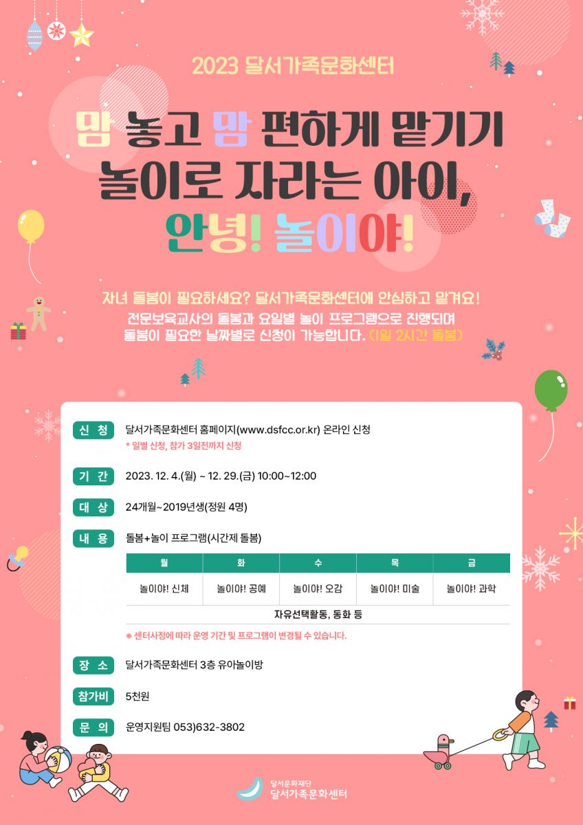 달서가족문화센터는 바로 그 가족이 함께하는 행복 공간이 되고자 합니다.