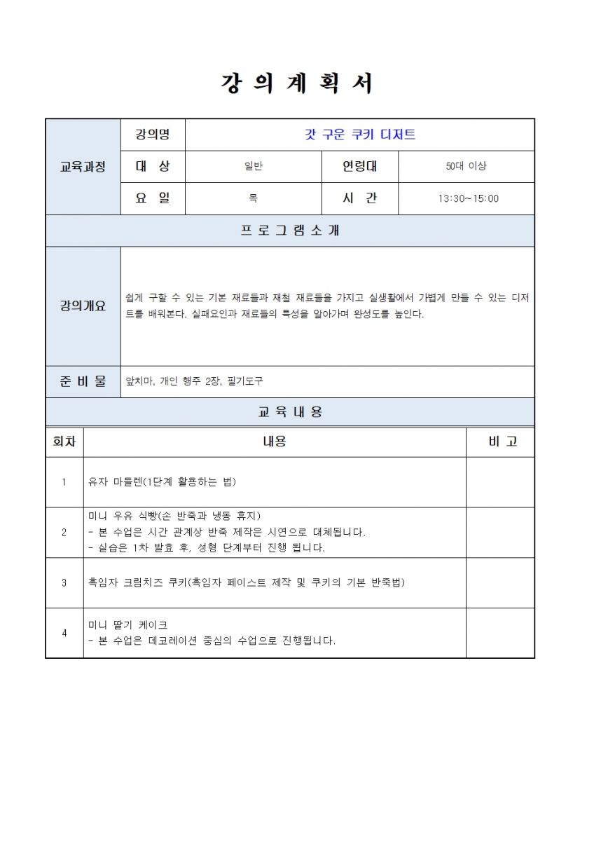 50+액티브 문화배움터: 갓 구운 쿠키 디저트