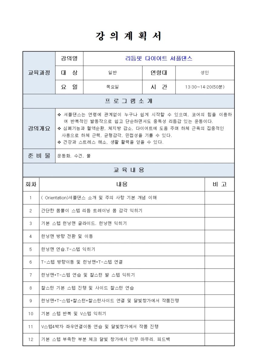 무용 접수예정리듬핏 다이어트 셔플댄스