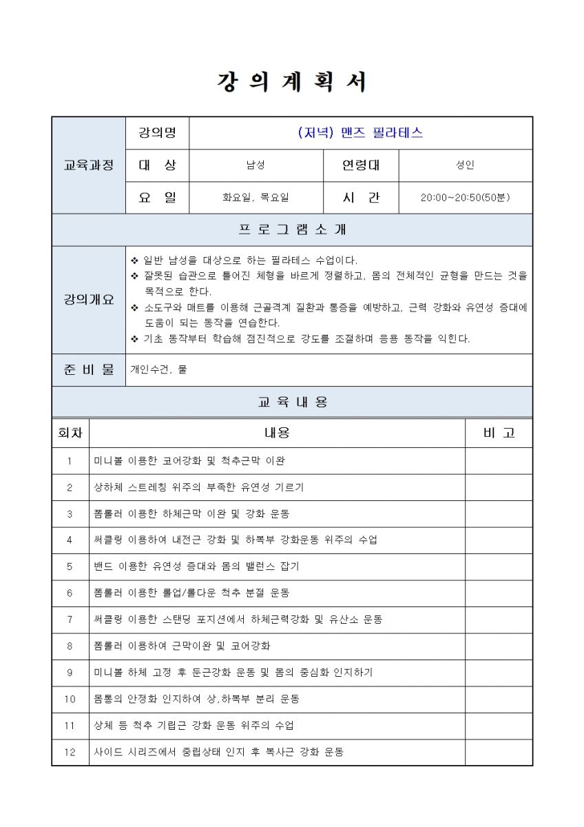 무용 접수예정[남성](저녁)맨즈 필라테스