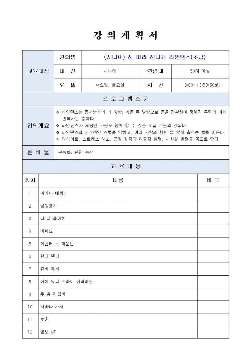 무용 접수예정(시니어)선 따라 신나게 라인댄스(고급)