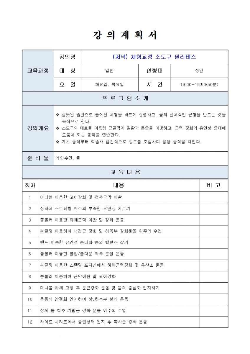 무용 접수예정(저녁)체형교정 소도구 필라테스