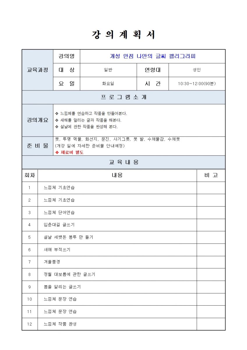 미술 접수예정(저녁)개성 만점 나만의 글씨 캘리그라피