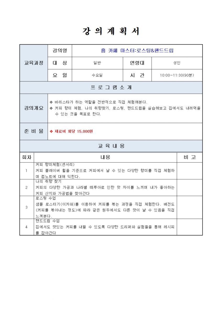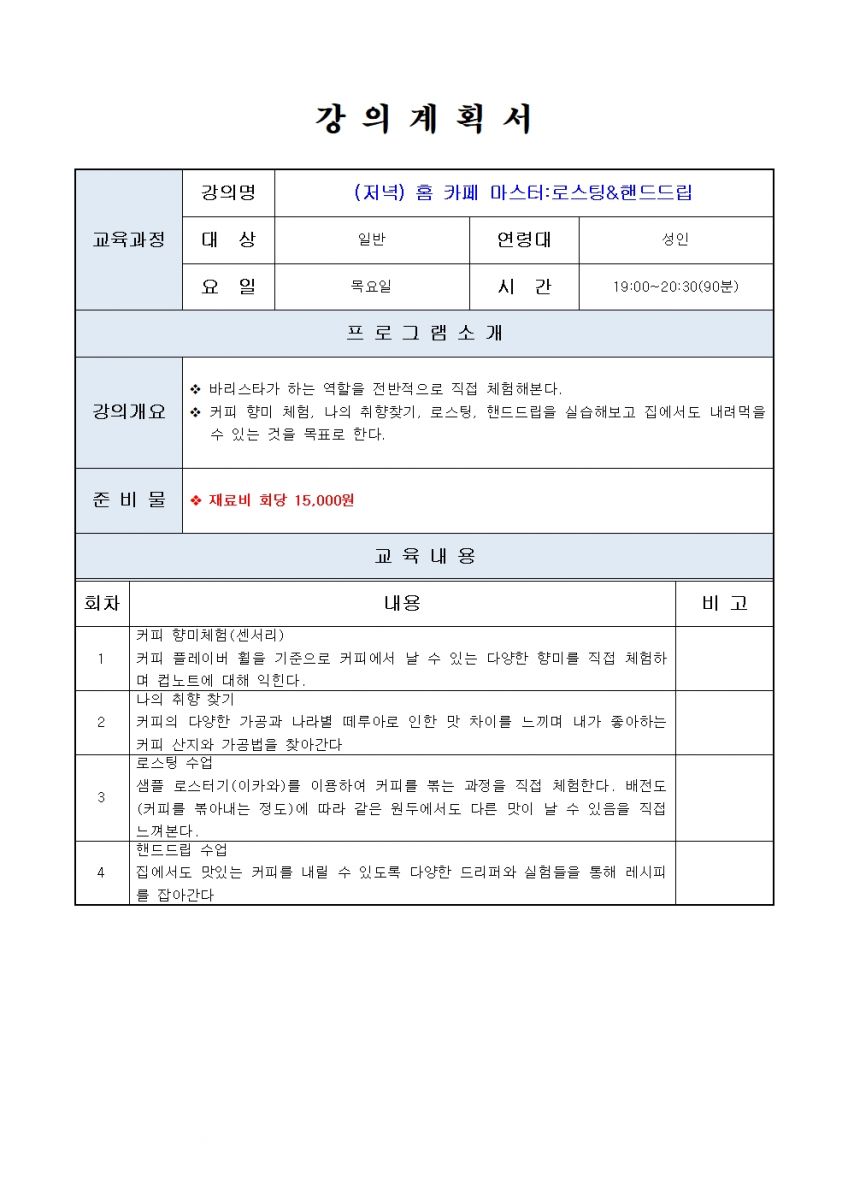 바리스타 신청마감(저녁) 홈 바리스타:에스프레소&핸드드립Ⅰ