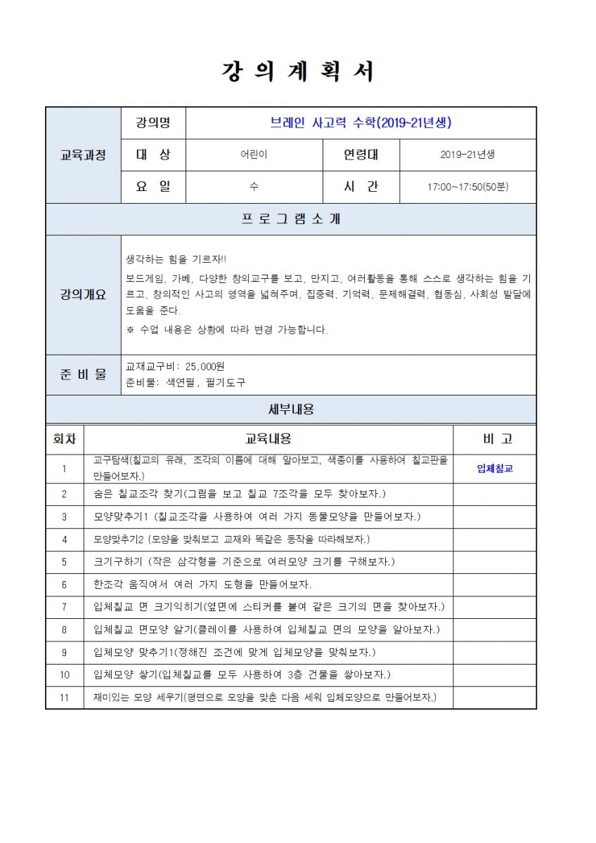 수리 접수예정[어린이]브레인 사고력 수학(2019~21년생)