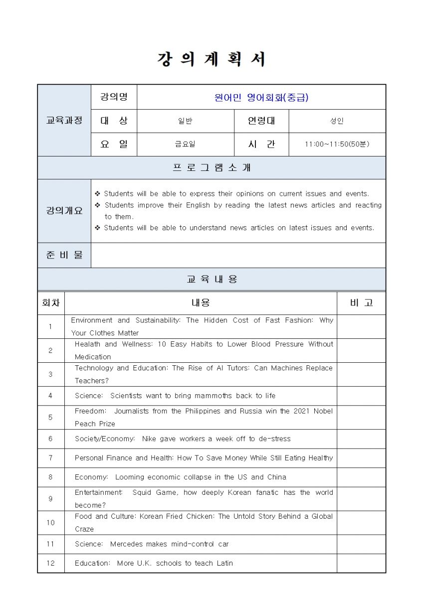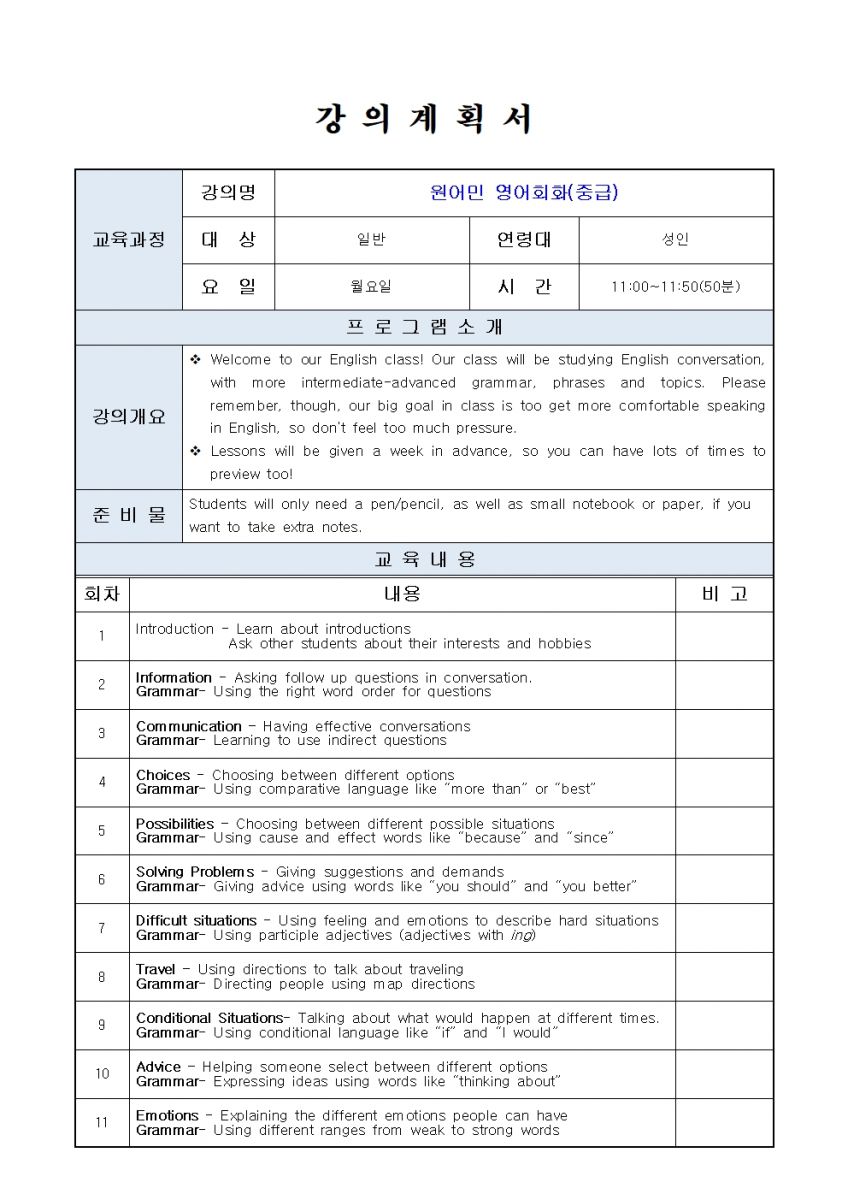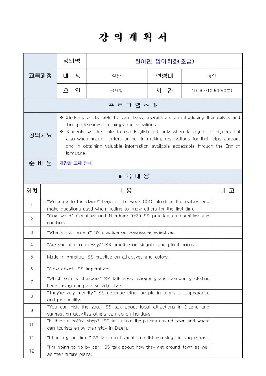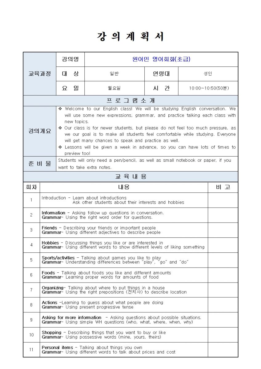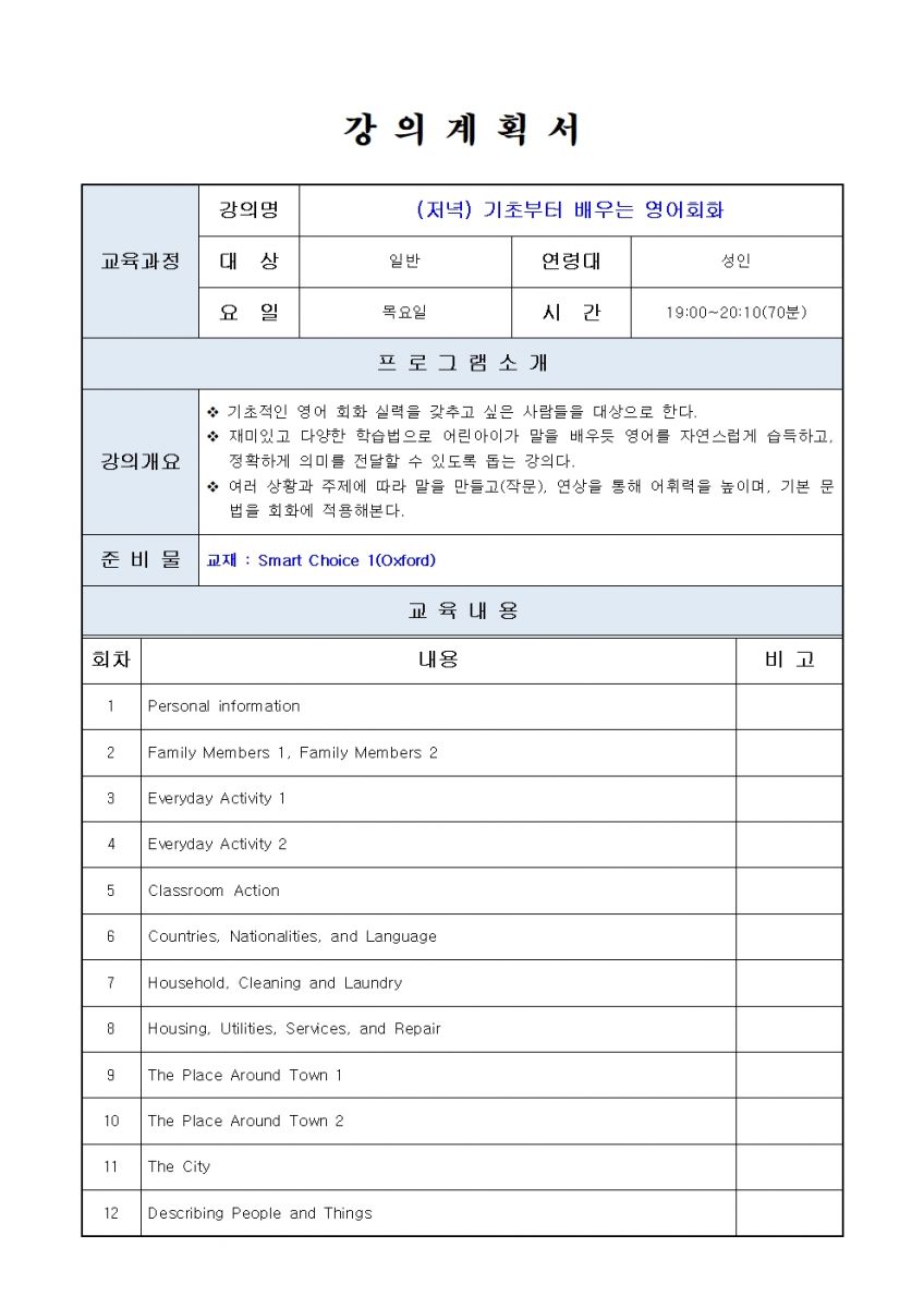 어학 접수예정(저녁)기초로부터 배우는 영어회화