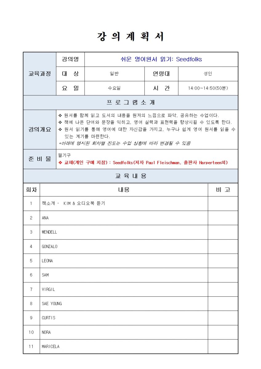 어학 접수예정쉬운 영어원서 읽기: Seedfolks