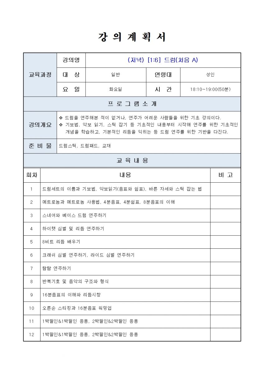 음악 접수예정(저녁)[1:6]드럼(처음B)