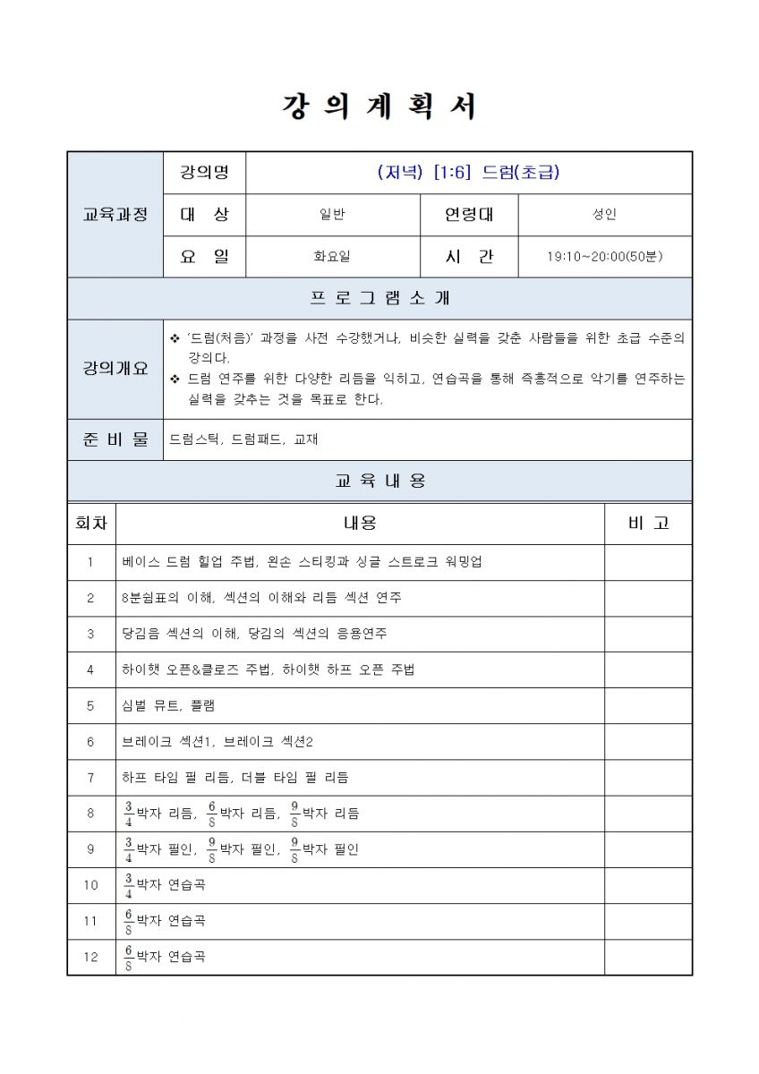 음악 접수예정(저녁)[1:6]드럼(초급)