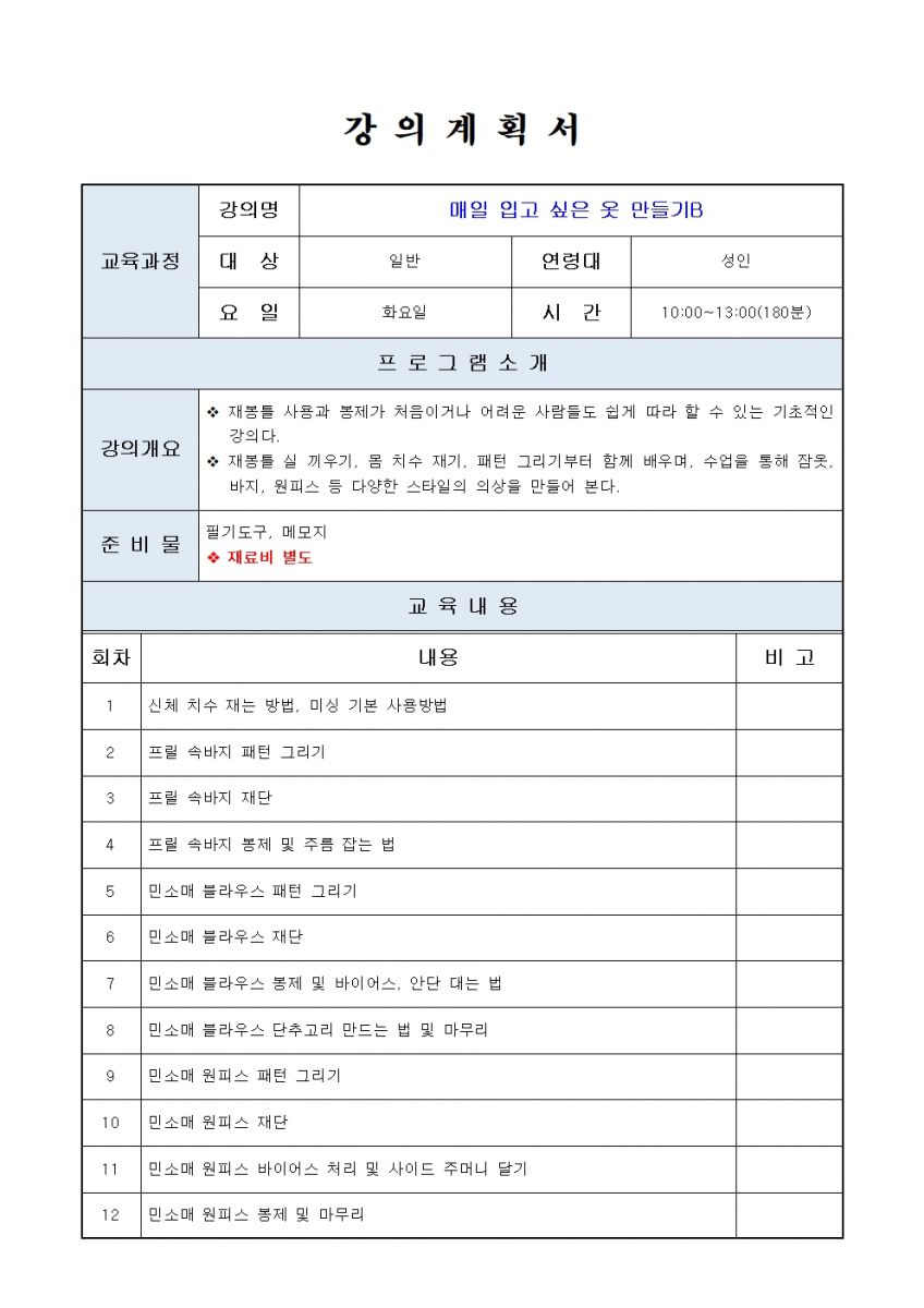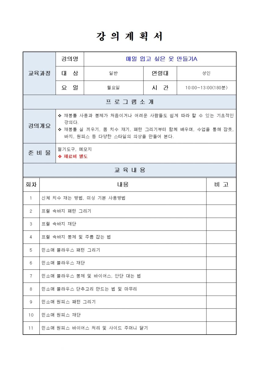 홈소잉 접수예정매일 입고 싶은 옷 만들기B