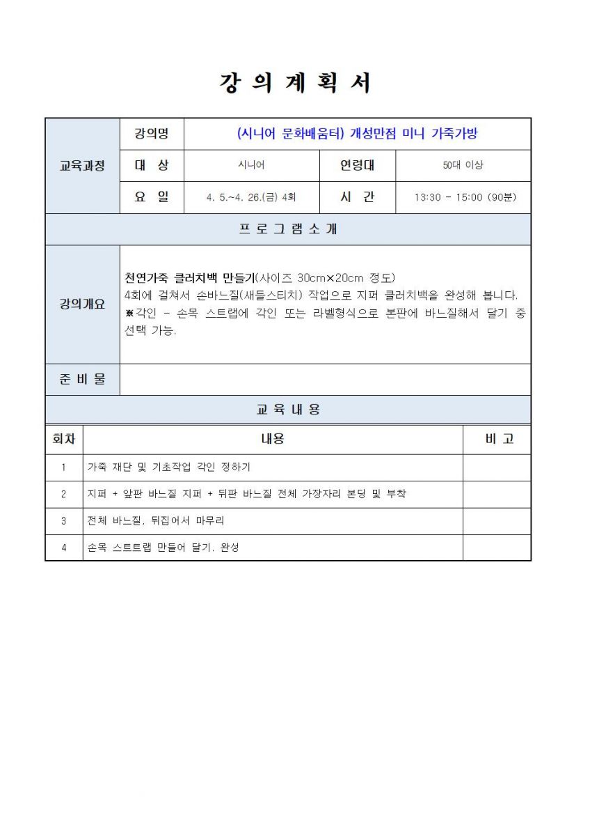 시니어 문화배움터 : 개성만점 미니가죽가방