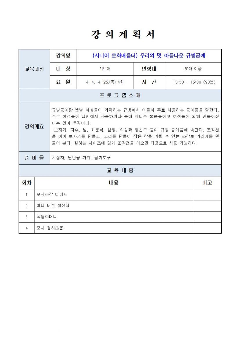시니어 문화배움터-우리의 멋 아름다운 규방공예