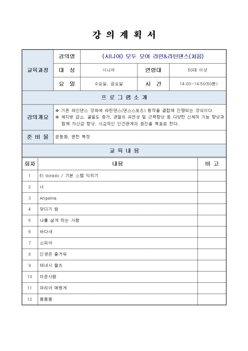무용 접수예정(시니어)모두 모여 라인&라틴댄스(처음)