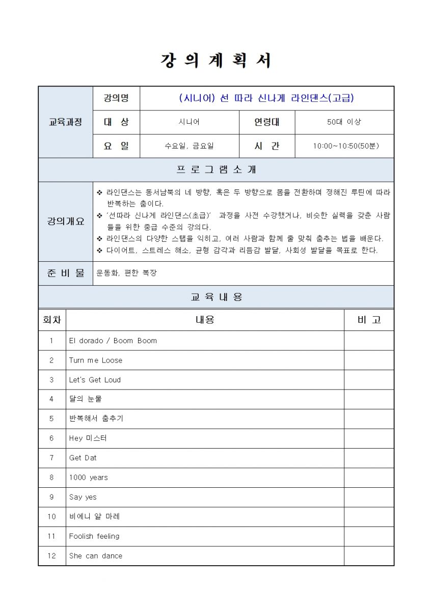무용 접수예정(시니어)선 따라 신나게 라인댄스(고급)
