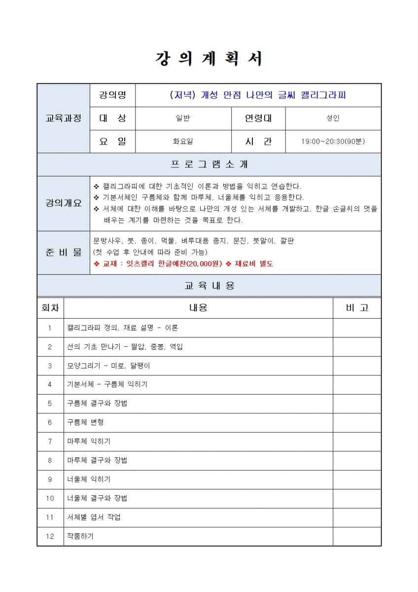미술 접수예정(저녁)개성 만점 나만의 글씨 캘리그라피