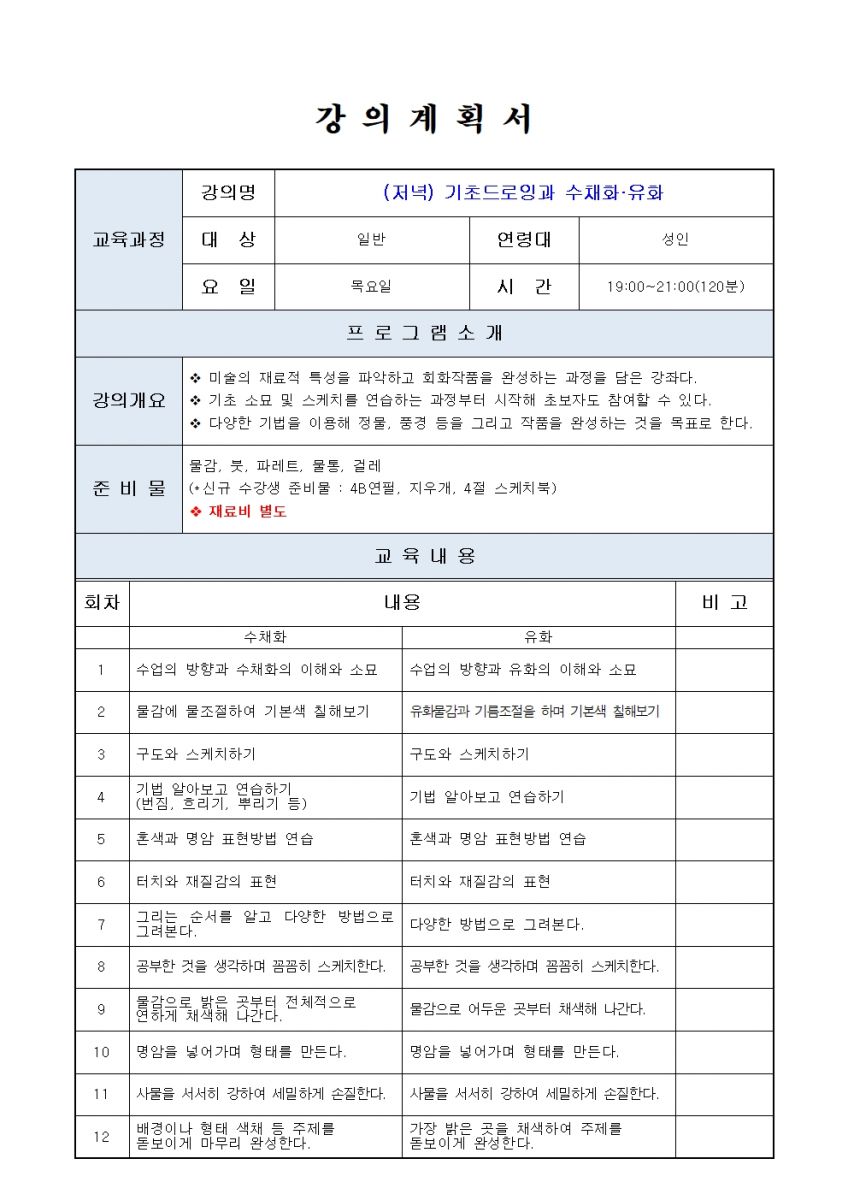 미술 접수예정(저녁)기초드로잉과 수채화·유화