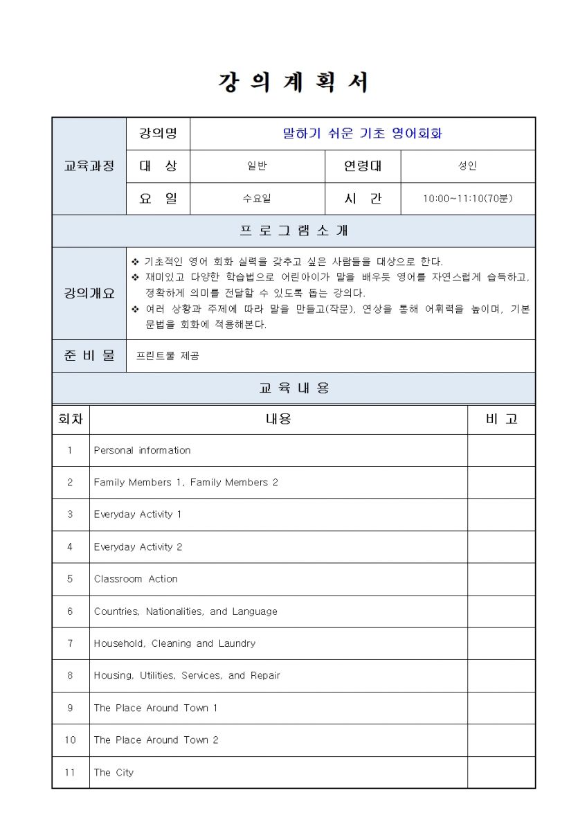 어학 접수예정(저녁)기초로부터 배우는 영어회화