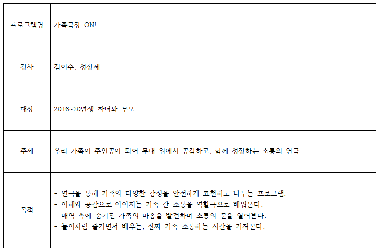 우리는 아트 패밀리 '음악극으로 만나는 가족의 행복이야기'(2016~20년생 자녀와 부모)