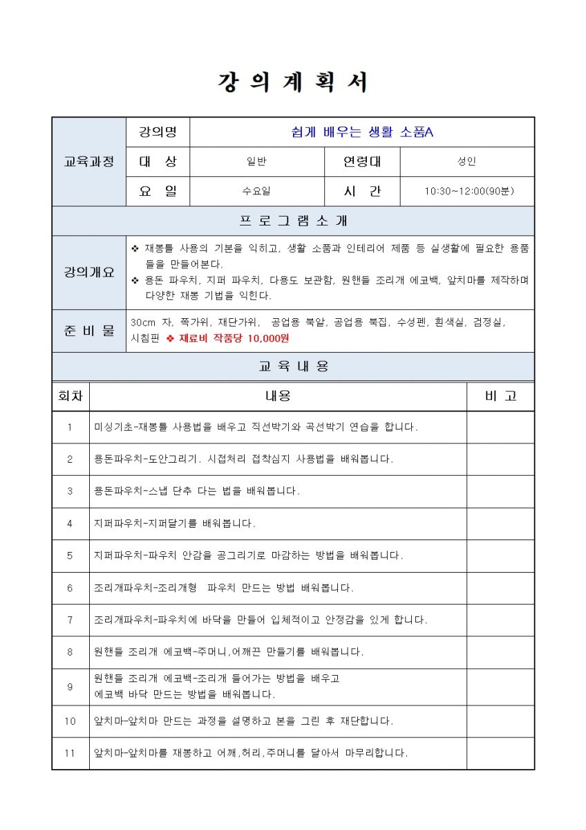 홈소잉 접수예정쉽게 배우는 생활 소품A
