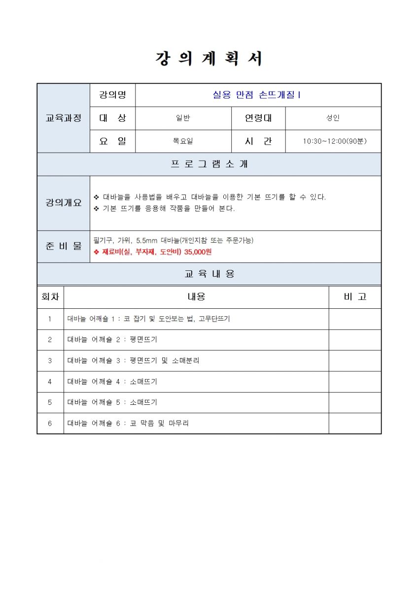 홈소잉 접수예정실용 만점 손뜨개질Ⅰ